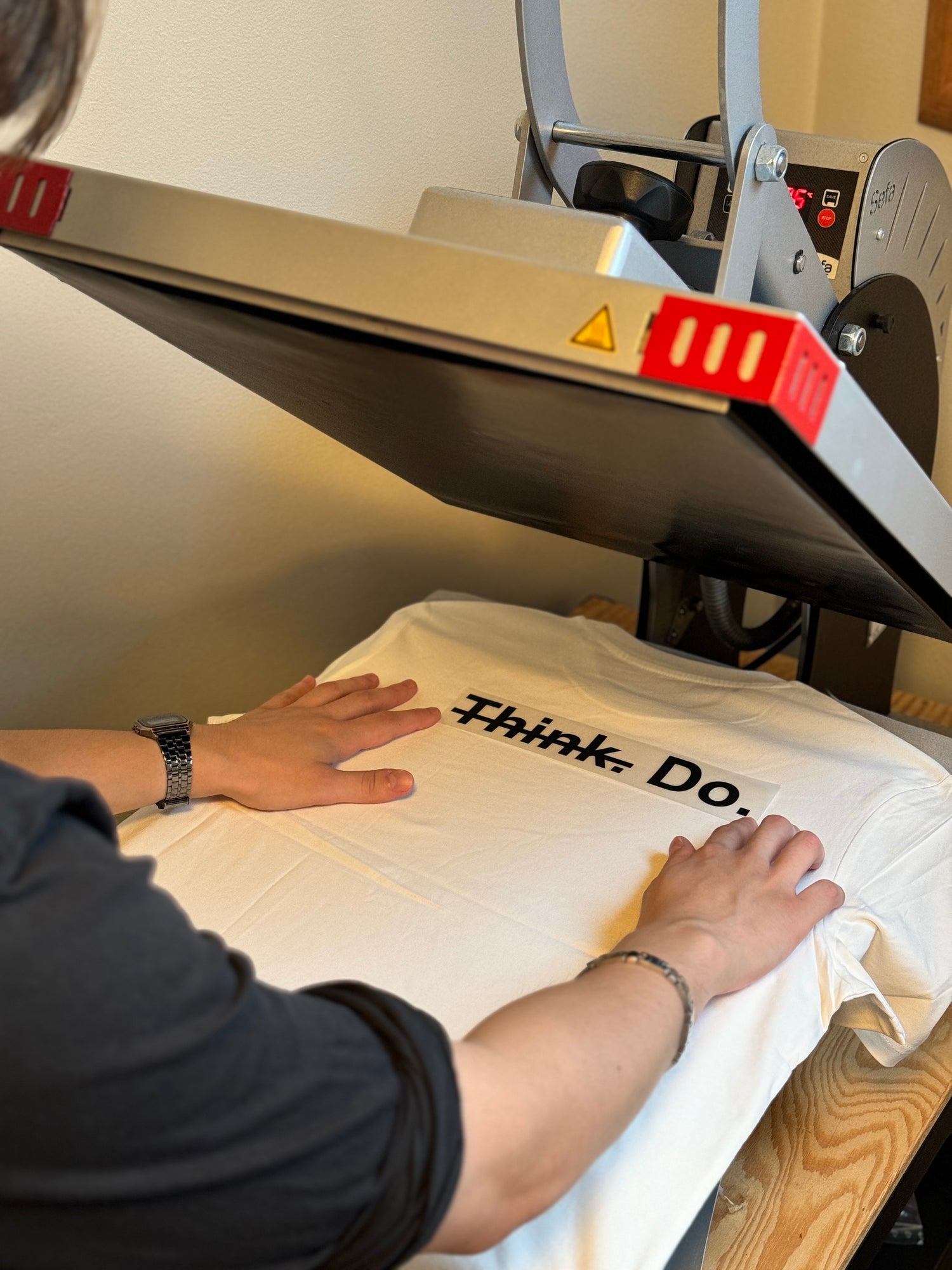 Lämpöpainatus ei käytä mustetta tai väriä, vaan perustuu materiaalin fyysiseen muokkaamiseen, jolloin lopputuloksena on elegantti ja hillitty kuviointi, joka tuntuu ja näkyy kankaan pinnassa.