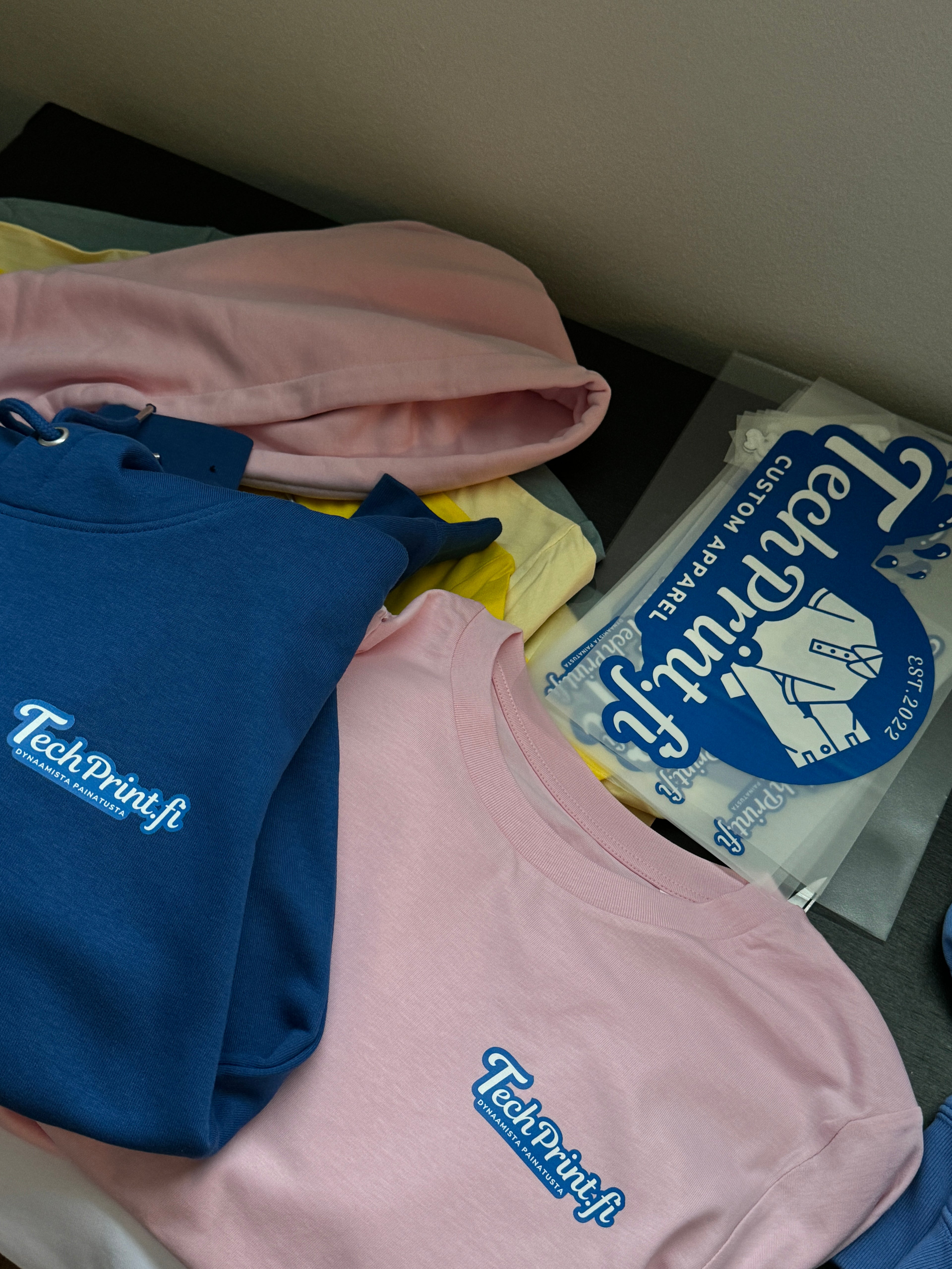 Asiakkaalle tehtiin merch t-paitoja sekä fleecet hallitukselle.