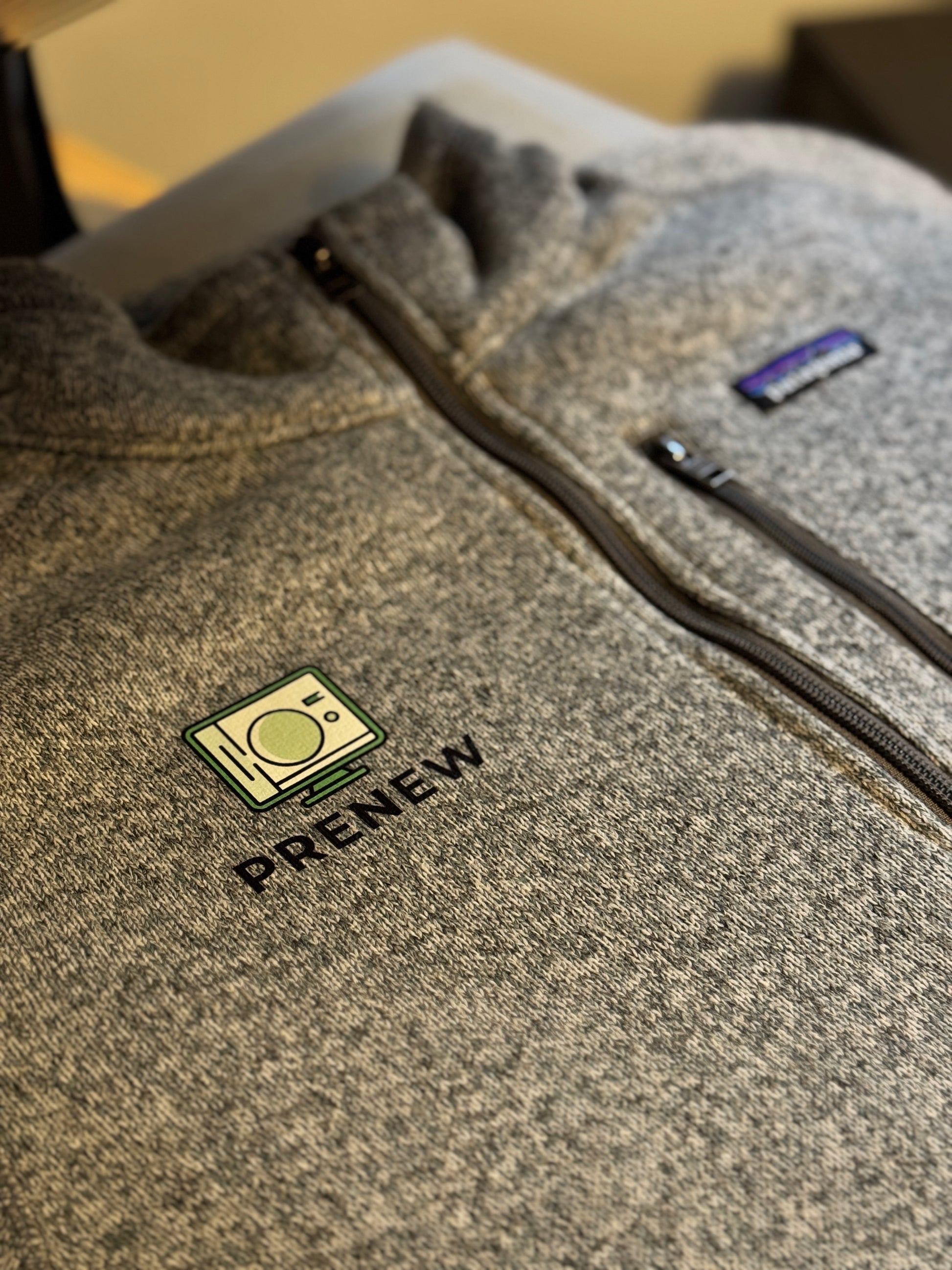 Toteutimme Prenew:lle omaan Patagonian quarter zippiin custom painatukset sekä muutamat premium t-paidat.